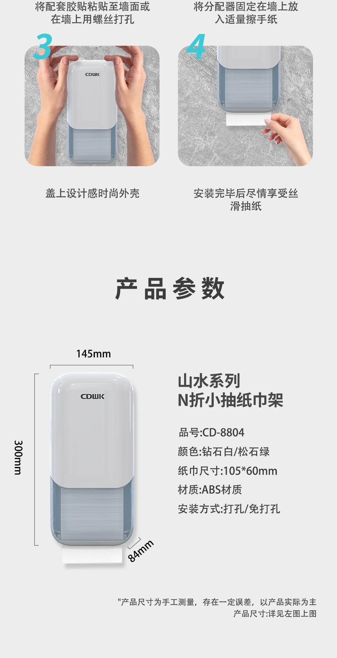 紙巾適配最大空間:120 × 65mm